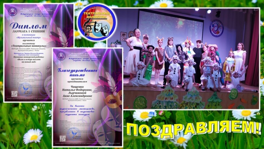 Сегодня мы узнали о результатах! Мы лауреаты I степени в номинации «Музыкальный театр» !!! От всей души поздравляем наших юных артистов и педагогов школы Чищенко Н.Ф. и Лырчикову А.А. Желаем нашим артистам и педагогам школы новых творческих находок, открытий и побед !